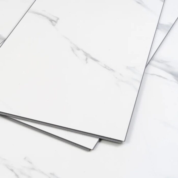 Piso Vinílico SPC 5mm. Porcellanato (4mm + IXPE 1mm.) con manta. De 300 x 600mm. Carrara, Gris Urbano y Grafito.