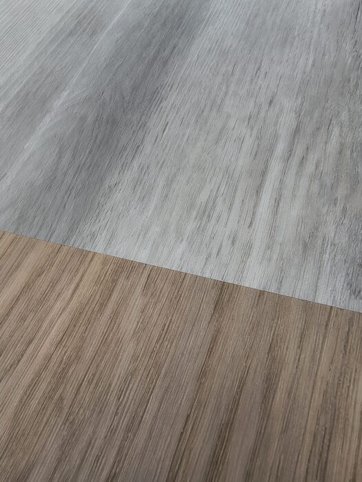 Piso LVT de 1219,20 x 18,4cm. 3mm (Capa de uso 0,3mm.). Teka/Vintage/ Gris Nature