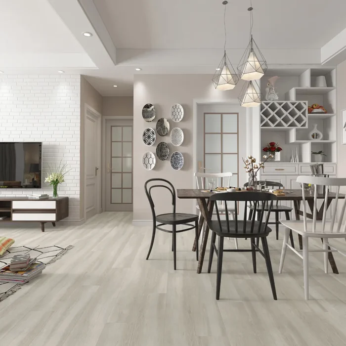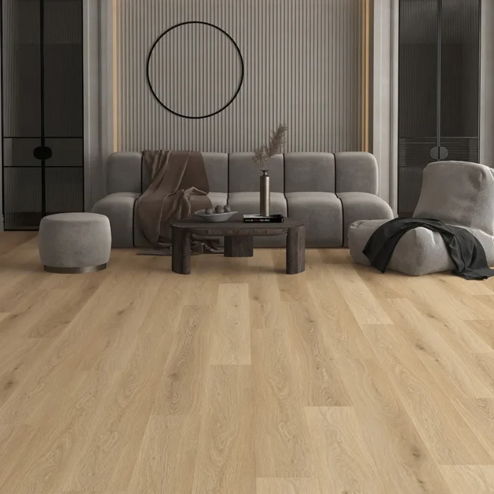 Diferencial para el Constructor: Al ser 100% Waterproof, permite unificar estéticamente livings, cocinas y pasillos, eliminando las juntas de transición y acelerando los tiempos de entrega.