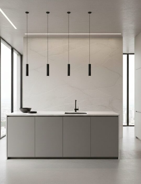 Formato Gran Medida: Placas de 2,80 x 0,90 m que permiten cubrir alturas de piso a techo sin juntas horizontales, optimizando la estética visual del paño.